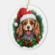 Celebrate the holiday season with our festive c Christmas wreath ornament. This charming ornament features a vibrant illustration of a green Christmas wreath, with the adorable face of a Cavalier King Charles Spaniel wearing a cheerful red Santa hat at the centre. Perfect for dog lovers and holiday enthusiasts, this delightful decoration adds a touch of festive cheer to any Christmas tree. Made from high-quality materials, it ensures lasting beauty year after year. Hang it on your tree or gift it to friends and family for a heartwarming holiday surprise.