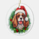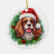 Celebrate the holiday season with our festive Cavalier King Charles Spaniel Christmas wreath ornament. This charming ornament features a vibrant illustration of a green Christmas wreath, with the adorable face of a Cavalier King Charles Spaniel wearing a cheerful red Santa hat at the centre. Perfect for dog lovers and holiday enthusiasts, this delightful decoration adds a touch of festive cheer to any Christmas tree. Made from high-quality materials, it ensures lasting beauty year after year. Hang it on your tree or gift it to friends and family for a heartwarming holiday surprise.
