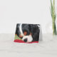 This is a blank note card featuring an original photograph of a beautiful tri-colour Cavalier King Charles Spaniel, sleeping on his colourful, striped blanket.