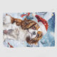 This festive design captures the joyful spirit of the holiday season, featuring an adorable pup wearing a Santa hat. The dog is nestled in a winter wonderland, complete with a snowman, a decorated Christmas tree, and beautifully wrapped presents. Snowflakes gently fall, adding a magical touch to the scene, while the vibrant colours of the holiday decorations create a warm and cheerful atmosphere.