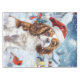 This festive design captures the joyful spirit of the holiday season, featuring an adorable pup wearing a Santa hat. The dog is nestled in a winter wonderland, complete with a snowman, a decorated Christmas tree, and beautifully wrapped presents. Snowflakes gently fall, adding a magical touch to the scene, while the vibrant colours of the holiday decorations create a warm and cheerful atmosphere.