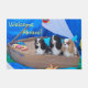 This is a doormat featuring an original photograph of three adorable Cavalier King Charles spaniels on their naughty dog sailboat.