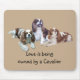 The Cavalier King Charles Spaniel is an elegant, energetic toy breed that is compatible for city or country life. Successful in conformation shows, obedience and agility, they also make wonderful therapy dogs due to their sweet, gentle natures. Their silky coats come in four colours – Blenheim (chestnut and white), Tricolor (black, white, and tan), Ruby (solid red) and Black and Tan. Friendly and easy to train, the Cavalier is a trustworthy companion for children and thrives as part of a family. The coat requires weekly brushing, but no trimming. The breed is adaptable in their need for exercise, happy with either sleeping on the couch or taking long walks.
