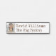Funny caveman themed door name plate with cartoon graphics of caveman, on the left side of the plate. Personalise the custom text for your boss' office door.
