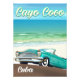 Cayo Coco cuban vintage travel poster of a retro classic automobile.