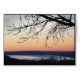 This note card features the view from a hill south of Cayuga Lake, the longest of central New York's glacial Finger Lakes. The city of Ithaca is located at the southern end. It is the perfect place to view this breathtaking sunset. The sky glows with brilliant colours of orange, pink, yellow, cream, blue and violet. Silhouetted hills line the eastern shore. A low lying branch dominates the foreground and frames this lovely scene.