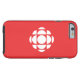 Created by Swiss-Canadian design firm Gottschalk + Ash, in a further revision of Burton Kramer's 'gem'. The red colour represents Canada in a symbolic way, the radiating form respects the DNA of the CBC brand and will not get lost in translation. Canadians would still recognise this as the CBC logo and the improved structure — fewer visual parts and colour — fits across multiple screens, legible on a mobile phone, laptop or in print and is visually less cluttered. Used from 1992 - present.