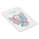 The guardian angel magnet features the painting of a yellow, baby blue, and soft pink awareness ribbon with clouds. This awarensss ribbon has the meaning of supporting Congenital Diaphragmatic Hernia CCDH) Awareness. The awareness angel ribbon art can be customised with personalised messages to make great cause magnets for fundraisers, awareness gifts, or other special events or occasions.