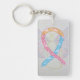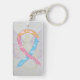 The guardian angel keychain features the art of a congenital diaphragmatic hernia awareness ribbon angel painting. The congenital diaphragmatic hernia awareness angel ribbon art keychain can be customised with personalised messages to make great cause keychains for fundraisers, awareness gifts, or other special events or occasions.