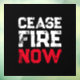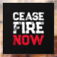 Cease Fire Now white red black distressed grunge typography anti war window cling sign.