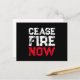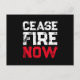 Cease Fire Now white red black distressed grunge typography anti war postcard.