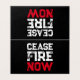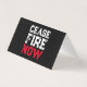 Cease Fire Now white red black distressed grunge typography anti war folded card / table sign.