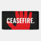 Ceasefire red white black hand bold custom text anti war banner.