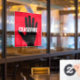 White text, black hand, red background.