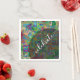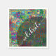 A piece of original abstract art creates the background design of this napkin. Featuring colourful watercolor textures that are overlaid with multicolored square confetti, the effect is celebratory and festive. Over the graphic image is a partially-transparent black circle, off-centre, with another graphic that depicts the word "celebrate" which was created using one of my modern script fonts. Move this word and circle around if you like. And congratulations on this exciting milestone!