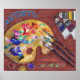 Poster for artists and art lovers with painting of a palette, paint and brushes.