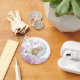 Celebrate Baby Shower Its a girl keychain. Featuring a sweet, hand-drawn illustration of a baby girl peacefully sleeping on a soft, fluffy cloud, this design is framed by a delicate border of watercolor flowers in shades of lavender, purple, and soft pink.