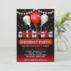 Red and silver tone "Celebrate" Birthday Party invitations featuring twinkle look diamond lights, balloons, and confetti . All that is required is your details to make a memorable celebration invite. Original illustration and design by Holiday Hearts Designs (all rights reserved). If you require assistance to customise for your occasion or you'd like this customised for another birthday year, please message us via Zazzle chat and we'll be happy to assist whenever possible.