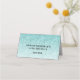 This trendy glitter place card has glitter on the front with an area for you to write in the names and table numbers (by hand). The back features the same glitter pattern with your event and date. Use the template form to add your own information. The Customise It feature can be used to change the font and the text layout.
