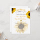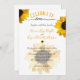 Celebrate love wedding invitation. Simple but elegant golden yellow sunflowers accent the gold and black typography. Bride and Groom names accented in deep gold flowing cursive text. Main text in black even cursive. Sunflowers are from an original painting, as is the text Love hand written in the artist’s handwriting. Full wedding suite available in Sunflower floral collection.