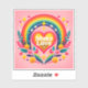 A lively display of vibrant colours and joyful motifs features a heart at the centre, surrounded by a bold rainbow and delicate flowers.