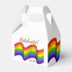 This PRIDE THEMED Favour Box features the LGBTQ flag. On the front and back panel the text reads "Celebrate!". The front panel has an area for custom text.