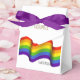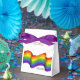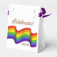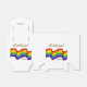 This PRIDE THEMED Favour Box features the LGBTQ flag. On the front and back panel the text reads "Celebrate!". There's an area for custom text, on the front flap. The tent sale has four ribbon colour choices (purple shown here.)