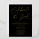 Simple graduation party invitations featuring "Celebrate the Grad!" displayed in an elegant gold foil calligraphy script with a black background. Personalise the black and gold foil graduation party invites with the graduate's name, school name, graduation year, and party details. The modern grad party invite reverses to display the graduate's vertical senior photo. The photo graduation invites are perfect to use for both high school and college graduates!