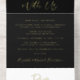 Elegant black elopement or private wedding announcement and reception all-in-one invitation that features "Celebrate With Us" showcased in a chic modern script and your marriage announcement and reception invitation in simple lettering, all rendered in your choice of genuine gold, silver or rose gold foil. A tear away RSVP postcard provides a convenient and envelope-free response option for your guests.