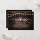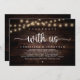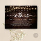 Mark the beginning of your forever with rustic elegance using our cottage and village string lights dark brown wood background themed, wedding elopement celebration invitation card, "Celebrate with us". Perfect for couples extending their joyous occasion, this invitation exudes sophistication with a hint of playfulness, setting the stage for a memorable event. Adorned with a timeless modern script design theme, it adds a touch of refined charm to your festivities. Crafted by TeeshaDerrick, this invitation promises to beautifully capture your love story.