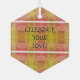 Celebrate Your Love! is an inspiring sentiment with an abstract background! Soft hearts, vines & sugar plums are ebbed into this handcrafted design amidst a pattern of pink and yellow motifs! There are also two white stripes across the front! This stunning ornament is great for engagement and anniversary celebrations during the holiday season!