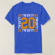 This vibrant royal blue t-shirt boasts a creative display of the number "20," celebrating a milestone or significant number in a unique fashion. The design alternates between yellow and white shades, giving the number a standout appearance that’s both bold and playful. This t-shirt is an ideal choice for commemorating personal achievements, anniversaries, or any special occasion associated with the number 20.