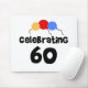 Three primary colours balloons and black text that reads "Celebrating 60" on 60th birthday cards, T-shirts, mugs, and more.
