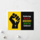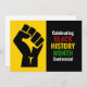 Motivational BLACK HISTORY MONTH CENTENNIAL flat card showing black raised fist graphic against a rich yellow background on the left, and CELEBRATING BLACK HISTORY MONTH CENTENNIAL in bold white, red, yellow, green typography set against a rich black background on the right. On the reverse there is a CUSTOMIZABLE greeting which you can personalize with your own wording. A great way to keep in touch over the Black History Month season—especially during this landmark centenary year. Other varieties of BHM cards, invitations, clothing and decor are available.