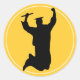 A black silhouette of a very happy young man as he graduates set against a background of gold. Makes a great sticker on favours or sealing graduation announcement envelopes.