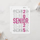 Join us as we celebrate the graduating class of 2025! Our senior class has worked hard to reach this milestone, and we're excited to honour their achievements. The invitation features a vibrant design with the word "SENIOR" repeated in bold, striking letters. In the centre, "SENIOR" is filled with pink glitter, while "class of" is written in an elegant white cursive font, creating a festive and memorable look. The number "2" is cleverly incorporated into the design, replacing the letter "I" in "SENIOR" with the same pink glitter texture, adding a touch of sparkle and creativity. Come celebrate with us and make this graduation unforgettable!
