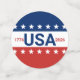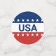 Celebrating the USA's 250th anniversary. Front: This red, white, and blue confetti has the word 'USA' in the center. The years 1776 and 2026 are next to USA. The top stripe is blue and has white stars. The center stripe is white. The bottom stripe is red with white stars. Back: 250