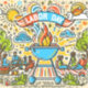 Celebrate Labour Day with this vibrant card featuring a lively outdoor barbecue scene. At the centre, a large blue grill with dancing flames and the bold text “LABOR DAY” serves as the focal point. Surrounding the grill, people are depicted enjoying each other’s company, sitting on picnic blankets and engaging in conversations. The background is adorned with sun rays, clouds, and stars, adding to the festive atmosphere of this special holiday that honours workers’ contributions.