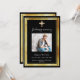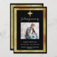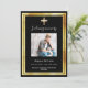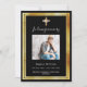 An elegant, modern, simple funeral/celebration of life program. A classic black background decorated with a faux gold cross, and faux gold looking frames. Personalise and add a photo name and details. White text.
