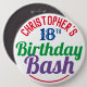 To celebrate a special birthday. Designed for someone who is 18 years of age. 18th birthday celebration. Birthday bash. Add the name and number. Birthday party button badge.