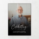 Commemorate the life of your loved one with this elegant trifold memorial service program. This beautifully designed program offers a respectful and heartfelt way to guide guests through the memorial service, honouring the departed with grace and dignity. The sophisticated black and white layout ensures a timeless and elegant presentation, making it a cherished keepsake for attendees. The front cover features a touching photo of the deceased, accompanied by the words "Celebrating the Life of" followed by their name and dates of birth and passing. This personal touch sets a warm and respectful tone for the service. Inside, the first panel is dedicated to the obituary, providing a space to share an overview of your loved one's life, significant achievements, and the people they leave behind, along with 3 photos. This section includes prompts to highlight important milestones, family connections, and personal characteristics, making it a reflection of the individual's unique journey. The inside middle panel outlines the order of service, offering a clear guide to the events of the memorial. It ensures that attendees can follow along with the proceedings and participate meaningfully. The third panel is reserved for a special reading or poem, adding a poignant and reflective element to the program. This can be a favourite poem, a passage of scripture, or any text that holds special significance to the departed and their family. The back cover is dedicated to acknowledgements, providing a space to express gratitude to those who offered support, condolences, and assistance during this difficult time. This section allows for general thank you messages, specific acknowledgements of groups or individuals, and a closing sentiment. Additionally, it includes information about any reception or gathering following the service. The inner flap features a collage of 6 photos. Perfect for funerals, memorial services, or celebration of life ceremonies, this trifold program ensures that every aspect of the service is thoughtfully organised and beautifully presented. It serves as a lasting memento for attendees to remember and honour the life of their loved one. This elegant trifold memorial service program provides a dignified and comprehensive tribute, helping you commemorate and celebrate a life well-lived with grace and respect.