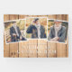 Composed of serif typography against a dark wood backdrop. These elements are modern country rustic. Add three custom photos.