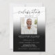 Invite family and friends to gather in remembrance with this Celebration of Life or funeral memorial invitation. Designed with two photos (one on each side), this photo invitation features elegant script in an editable gradient color (shown in black and white). Change the background and graphics colors in EDIT--the gradient will be automatic. Personalize with your loved one’s name, dates and event details to create a meaningful tribute. ASSISTANCE: For help with design modification or if you would like coordinating items, contact the designer BEFORE ORDERING via the Zazzle Chat MESSAGE tab or email makeitaboutyoustore@gmail.com.