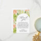 A beautiful funeral memorial thank you card features a beautiful border of flowers and a sample message you can use or change to your own words along with your loved one's name, birth and death dates. Room for more information on the back.