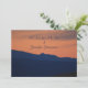 This simple and elegant invitation to a Celebration of Life or Memorial Service is decorated with our original photo of a beautiful orange sunset sky over dark blue-black mountains and hills. The reverse has the same landscape image, but lightened so that you can read the text. You can easily modify text on front and reverse. Original photograph by Marcia Socolik, taken in Death Valley, California. All Rights Reserved © 2015 Alan & Marcia Socolik