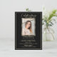 Elegant personalised Celebration of life memorial photo invitation cards. Formal, elegant card. Easy to add photo / picture of your loved one. Faux gold frame on a black background. . Makes great keepsake, memory of a loved one. Unisex (women, men). Poem in back or add your message/ text. See others like 'in loving memory'