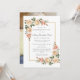 Two elegant blush pink rose arrangements decorate the gold frame to create an elegant celebration of life funeral invitation. Your loved one's photo is on the back.