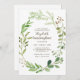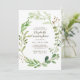 Composed of cursive script and serif typography on leafy greenery green foliage botanicals; All against a backdrop of white background. This is a classic, simple and clean funeral or memorial invitation.