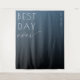 This elegant wedding backdrop features a gradient blue design, transitioning from light sky blue to deep navy, creating a calming and sophisticated atmosphere. The layout is minimalistic, with bold sans-serif typography spelling out "BEST DAY" and a flowing cursive script for the word "ever," adding an element of grace. Perfect for celebrating your special moment, this design offers a customizable date placeholder in the corner, allowing you to personalize it for your big day. Its modern style and tranquil color palette make it ideal for any wedding celebration, emphasizing joy and significance through its thoughtful composition.