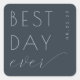 This wedding sticker features a modern and elegant design with a dark navy blue background. The phrase "BEST DAY ever" is prominently displayed in bold, uppercase letters paired with a cursive script for a sophisticated contrast. The minimalist layout emphasises simplicity, using negative space to highlight the text. Perfect for celebrating your special day, this sticker conveys a joyful and optimistic mood, making it an ideal addition to your wedding decor.